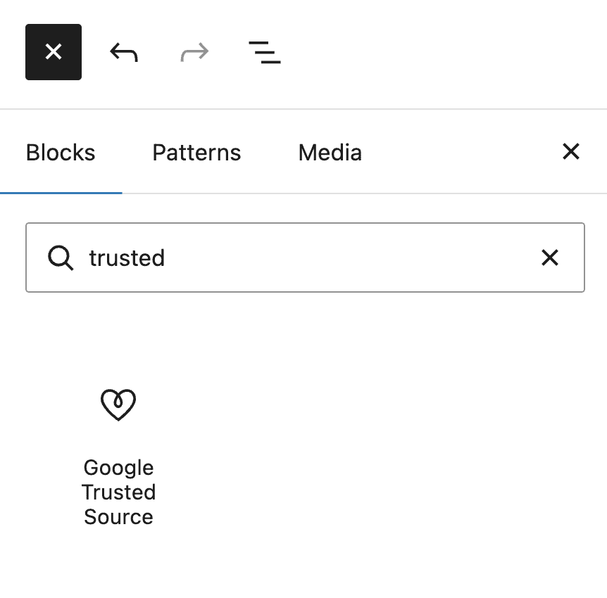 To add it, just click the [+] button in the block editor and search for "trusted":