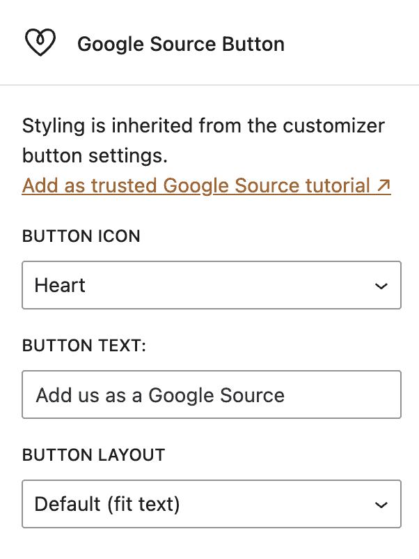 - Insert the Google Source Button block