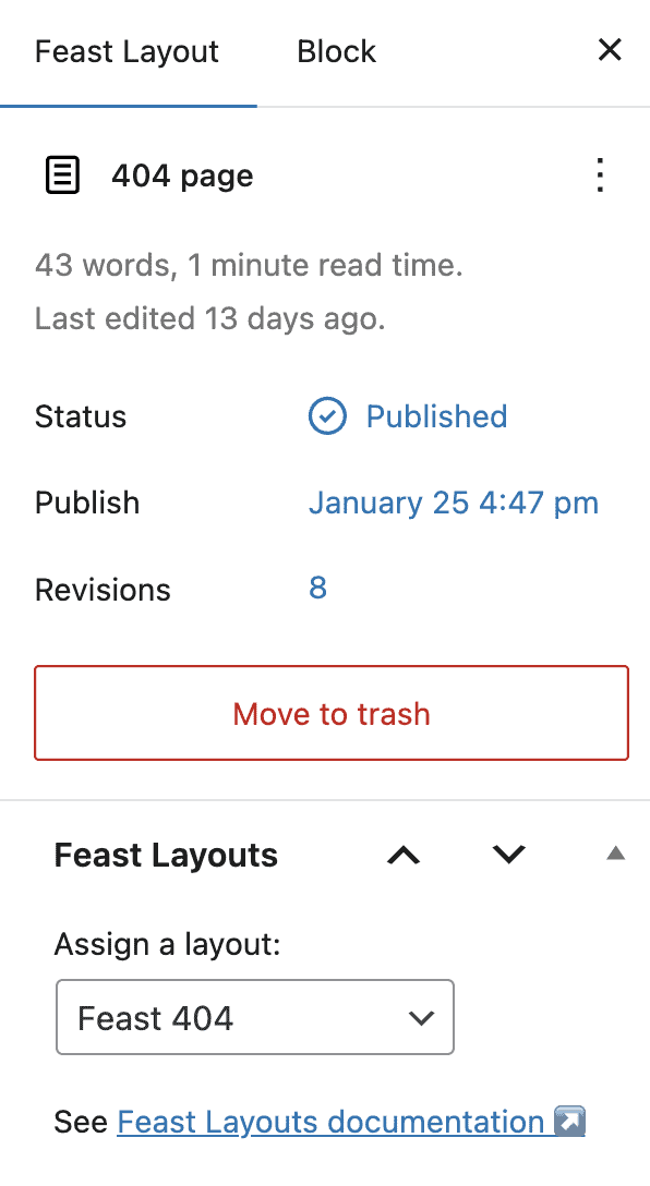 - Under Assign a Layout, set it to Feast 404