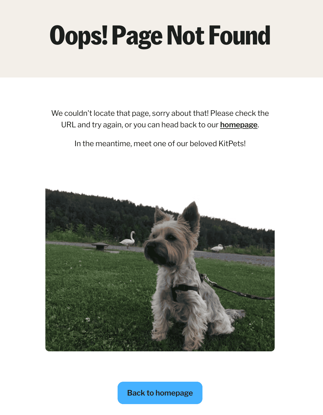 - fun or cute "not found" message