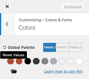 If you need to reset the Kadence color Palette, open the Customizer > Colors & Fonts > Colors > click the Blue Counter-Clockwise Circle > Save